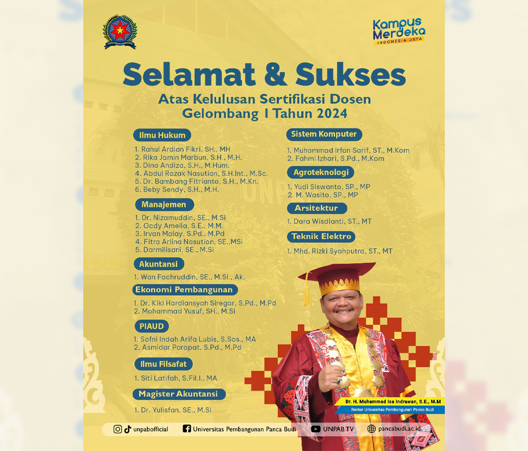 Selamat Kepada kelulusan Sertifikasi Dosen Gelombang I Tahun 2024